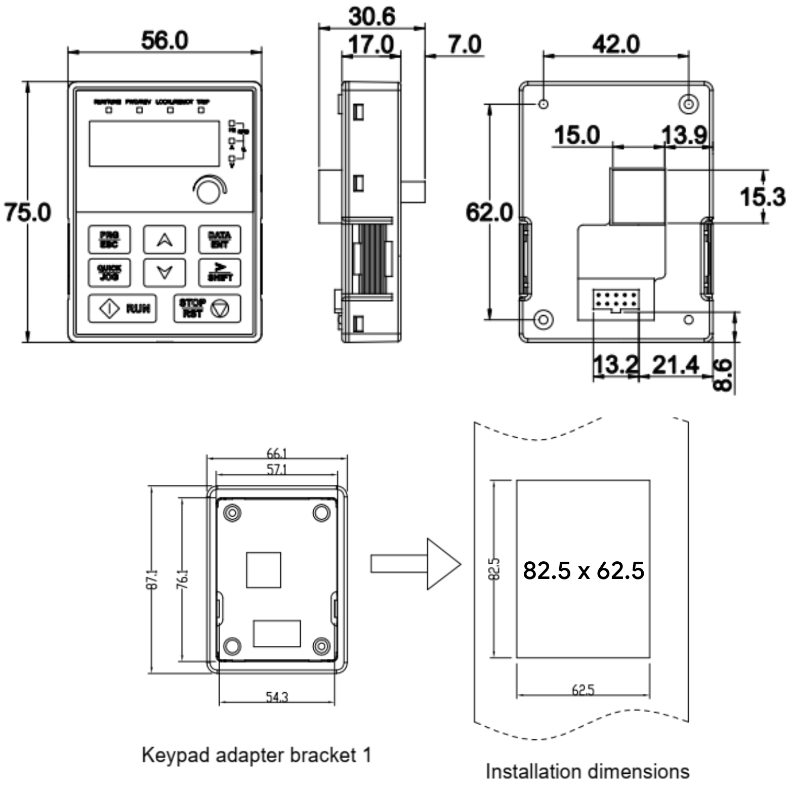 | GD20-2R2G-4 | 80.0 | 60.0 | 185.0 | 175.0 | 140.5 | 137.3 | Ø 5 | 1.0 |