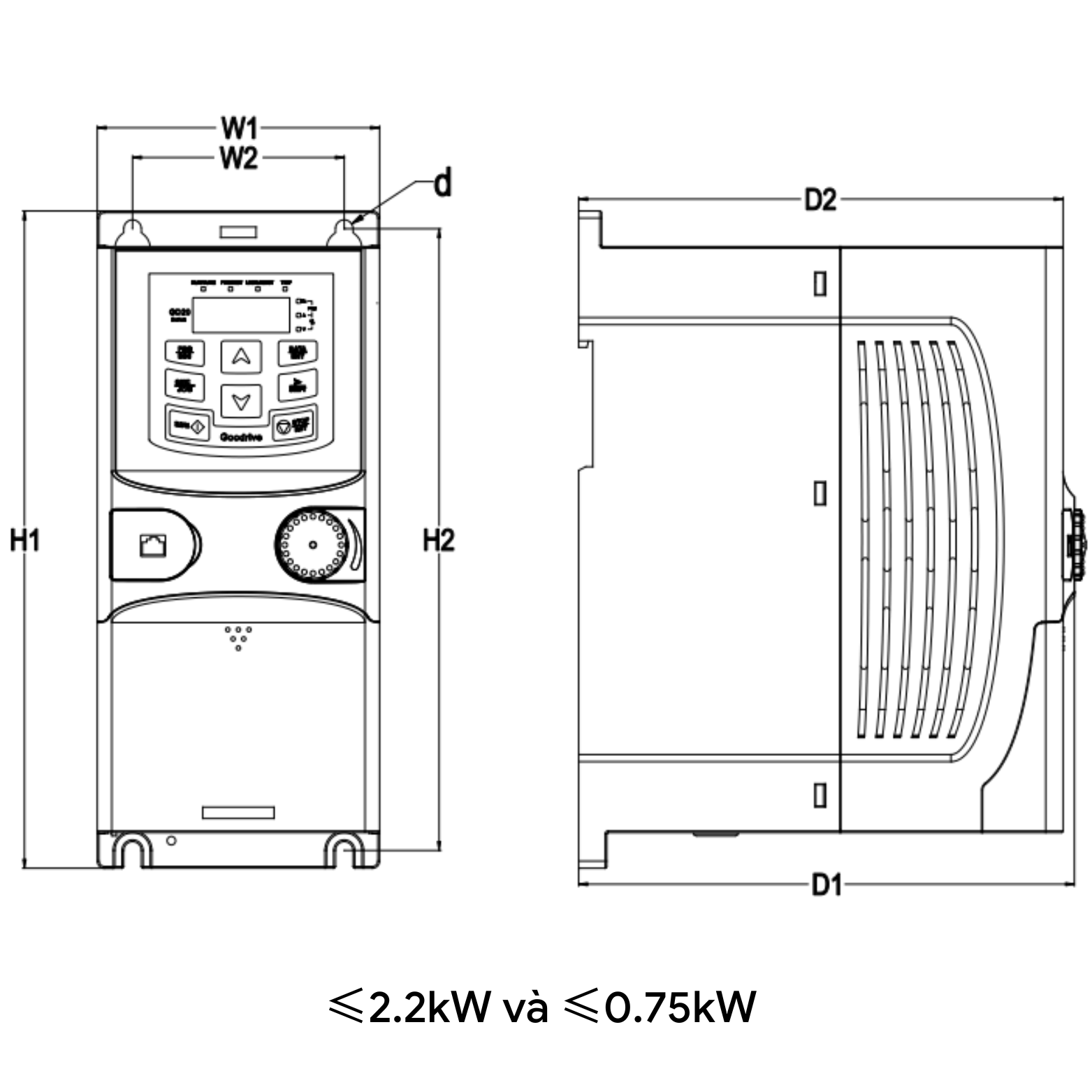 Từ 2.2kW trở xuống và 3PH 220V (≤0.75kW)