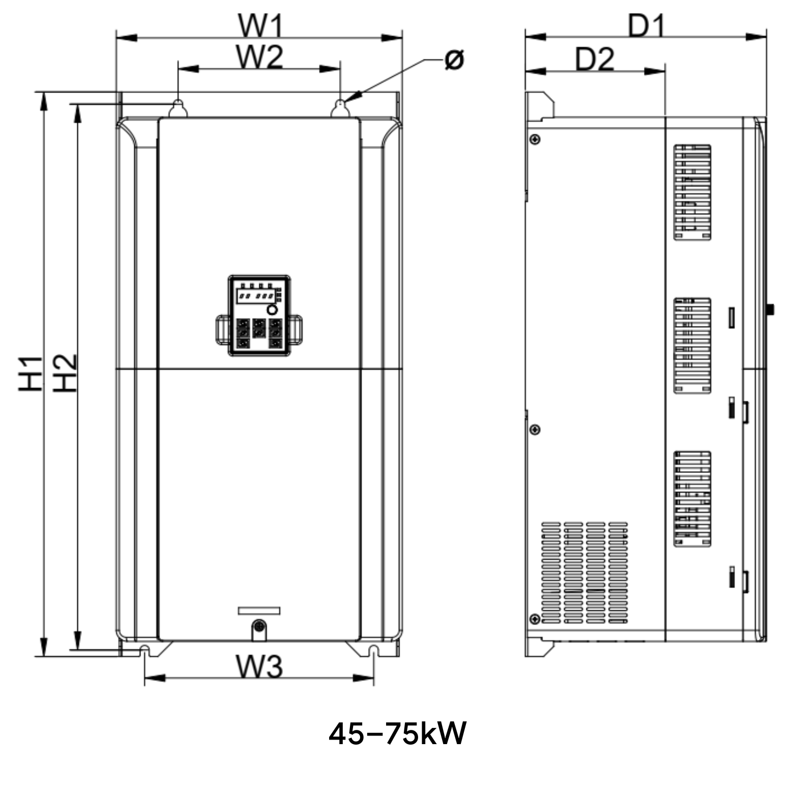 | GD20-045G-4 | 282.0 | 160.0 | 226.0 | 560.0 | 542.0 | 238.0 | 138.0 | Ø 9 | 25 |
